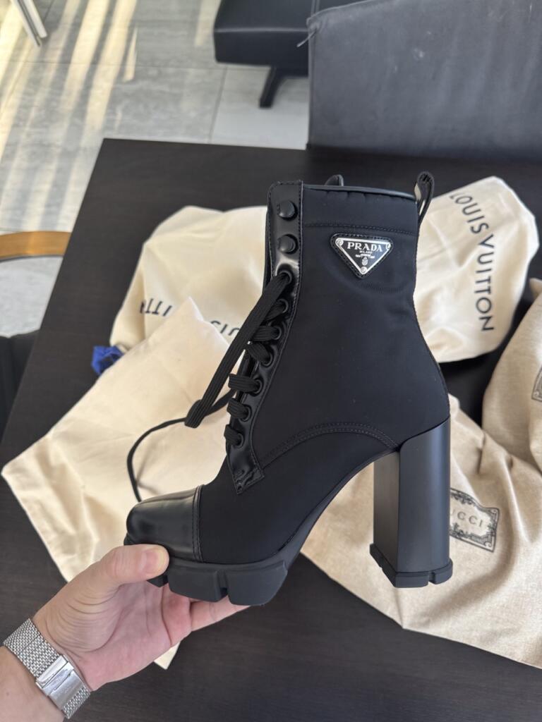 Aceasta pereche de ghete Prada, realizata dintr-un material textil sensibil, a fost curatata profesional pentru a reda aspectul impecabil. Pentru a asigura confortul perfect, ghetele au fost largite in laterale cu ajutorul presei de ajustare. Rezultatul? Ghete reconditionate, elegante si gata de purtat din nou.